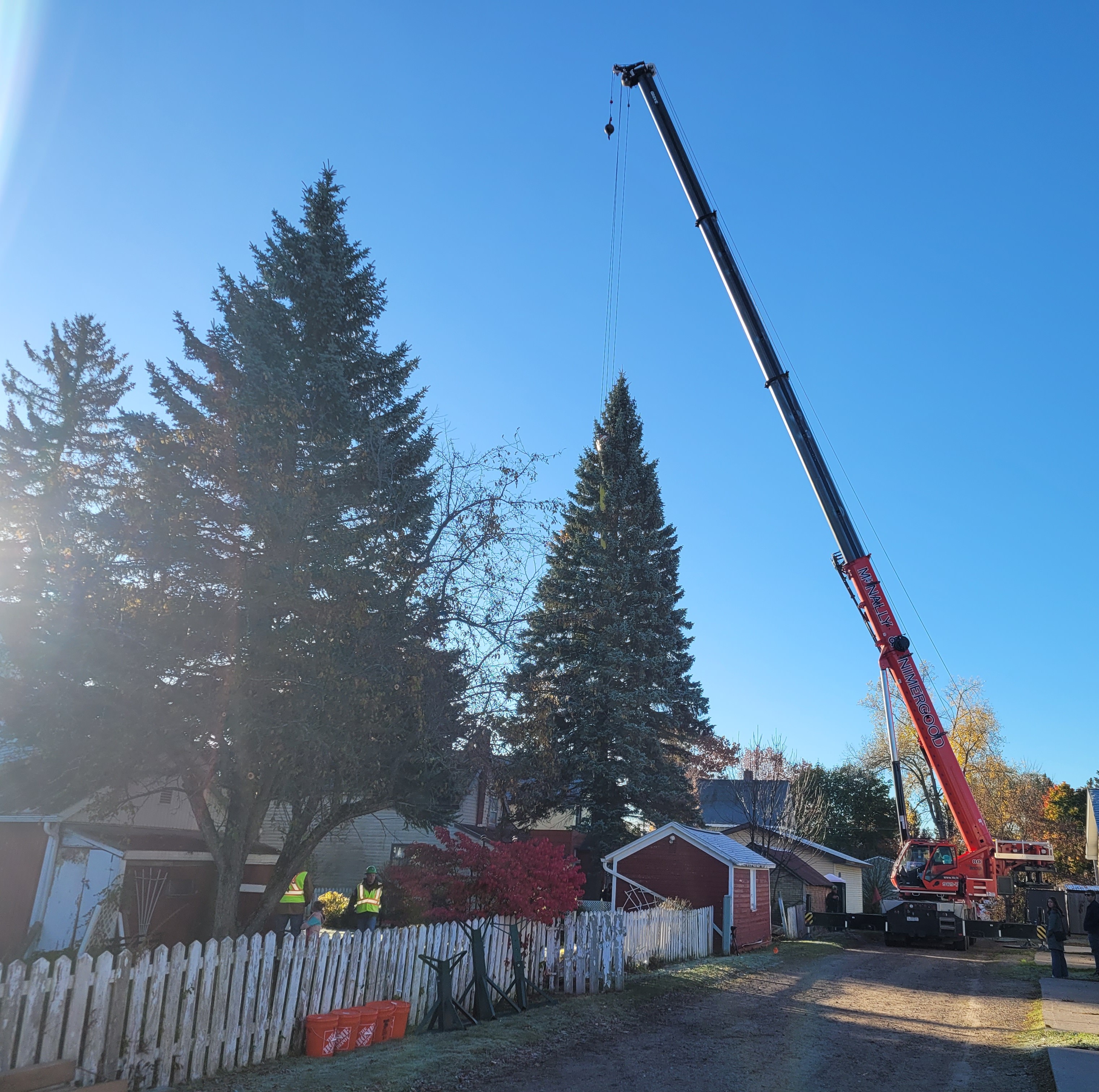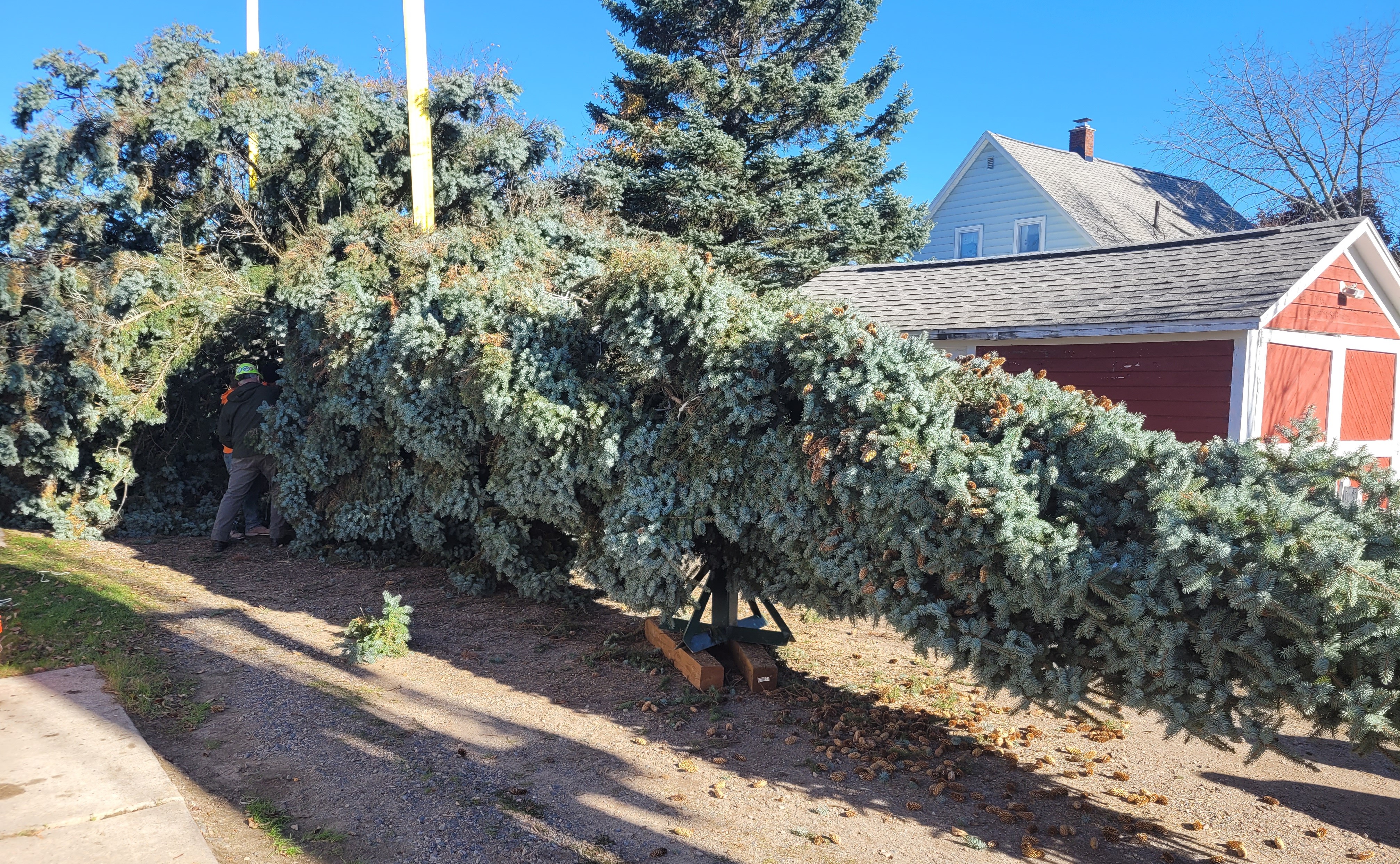 The official State Christmas tree, a 68-foot blue spruce, was donated by the family of Linda Ried and will be transported to the State Capital in Lansing where it will be on display for the duration of the 2025 Christmas holiday season.