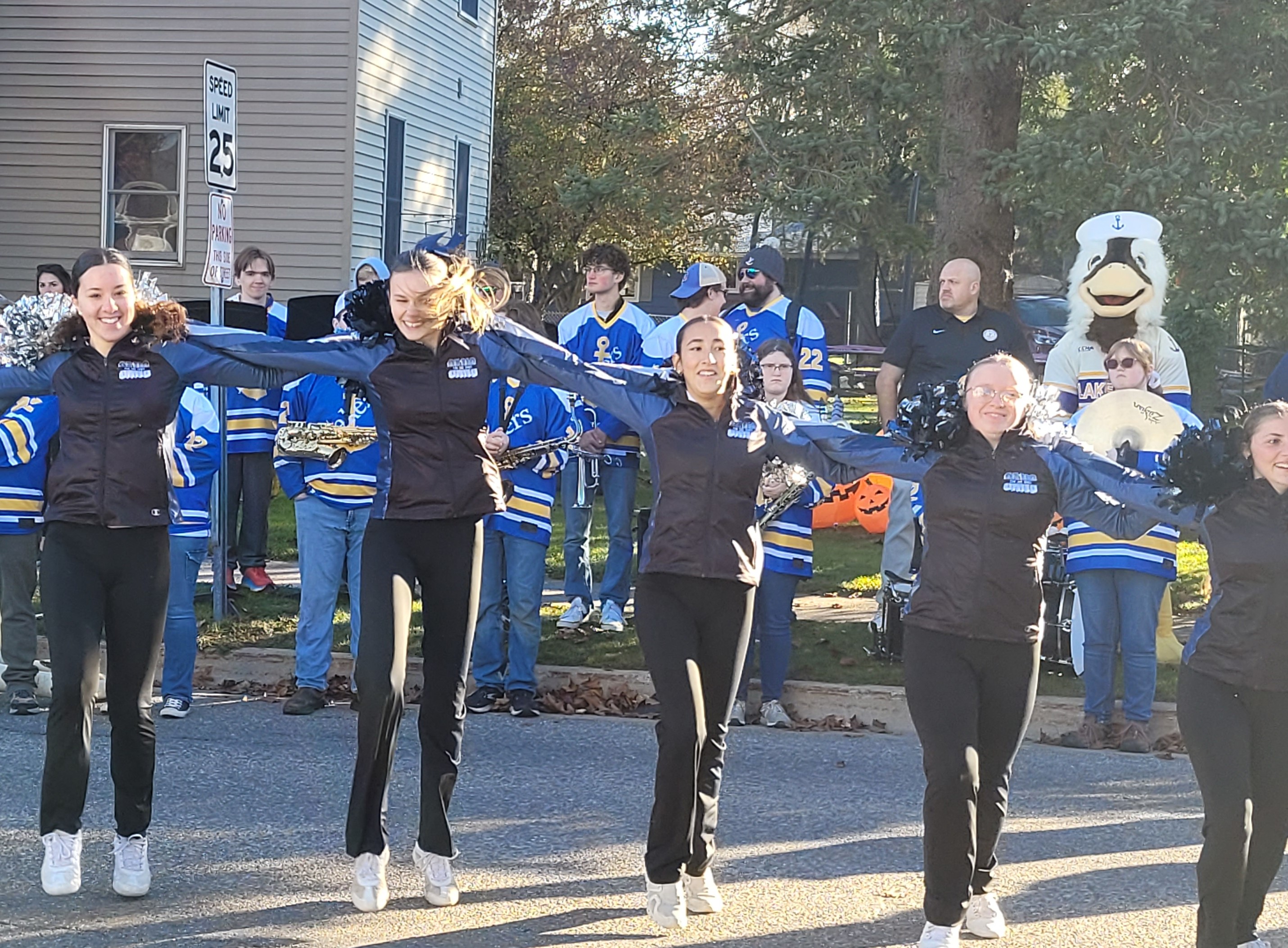 This year’s tree event ushered in the Christmas season festivities with performances provided by the Sault High School band, the Sault Area Poms Dance, and the Lake Superior State University’s pep band. A surprise visit by LSSU mascot ‘Seamore the Sea Duck’ was captured in the photo top right, as the crowd lined sidewalks on both sides of the street while enjoying the Patriotic and seasonal songs by the respective bands. The only thing absent was that anticipated word, SNOW…as the bands rendition of ‘Frosty the Snowman’ and ‘Santa Clause Is Coming To Town’ warmed the hearts of the faithful following on that crisp October morning.